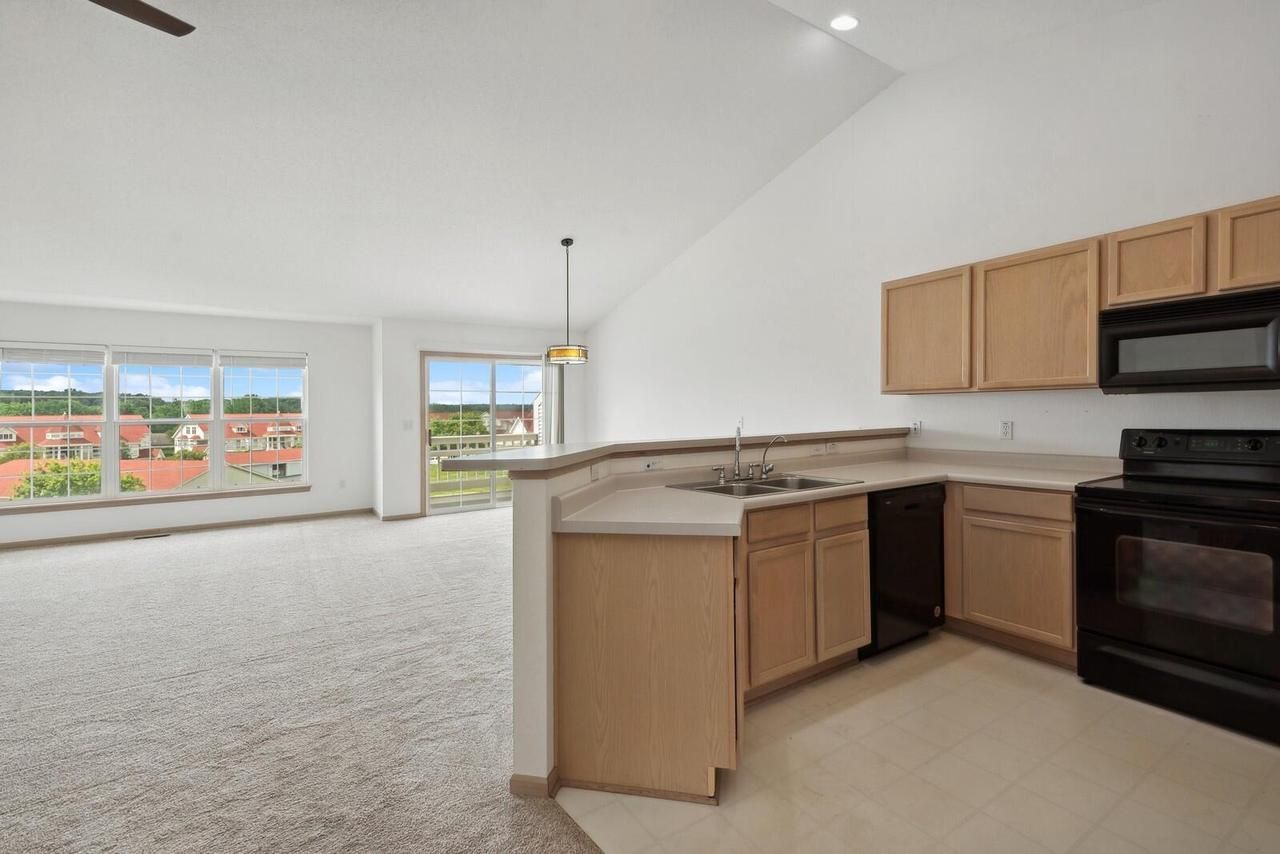 Lake access condo near Delavan Lake with southern exposure and walk-out lower level. Ranch layout offers main-level primary suite, attached garage, and great room with cathedral ceilings and fireplace. South-facing deck provides consistent natural light and open views over green space. Lower level includes bedroom, full bath, and additional living area with direct access to patio. Open common space behind unit creates unobstructed sightlines and close to pool. Updates within the past 5 years include furnace, central air, water heater, and Trex decking. HOA improvements include newer roof and siding. Located near community pool and shared green space. Only a block to the association waterfront, under 1.5 miles to Lowes, PetsMart, Walmart and many more shopping and dining options.